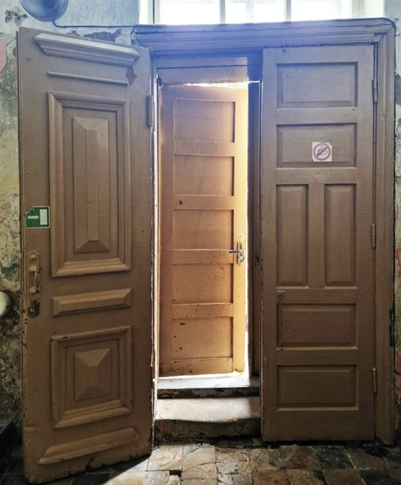 Ārdurvju iekšējā vērtne pa kreisi – II būvperioda durvis